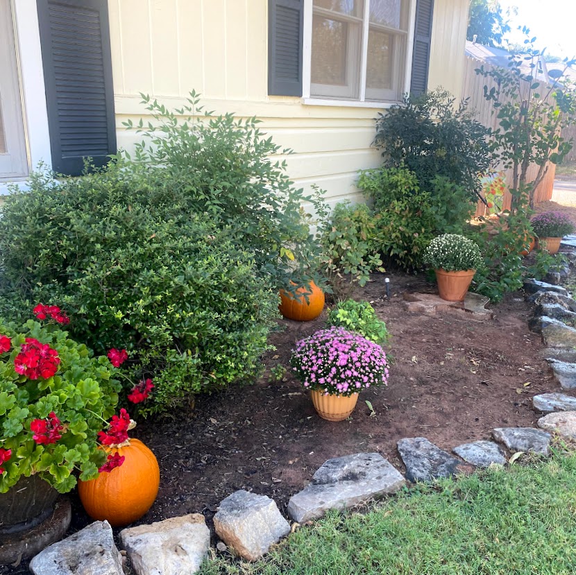 The cooler mornings mean I am much more motivated to work outside and get the tired Summer landscape all ready for Autumn. Pots of mums make their appearance now that it’s not scorching hot and they stand a chance of survival! I make a concerted effort at getting all the pesky weeds and grass out of the beds.
