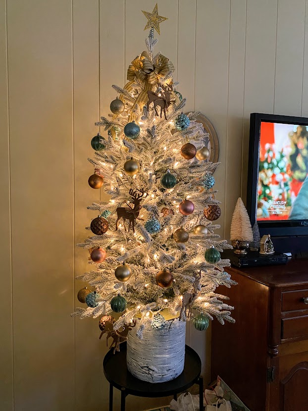The cottage dressed for the holidays, making us feel cozy and warm inside. What a delight it remains to see the lights of the tree last thing in the evening and first thing in the morning.